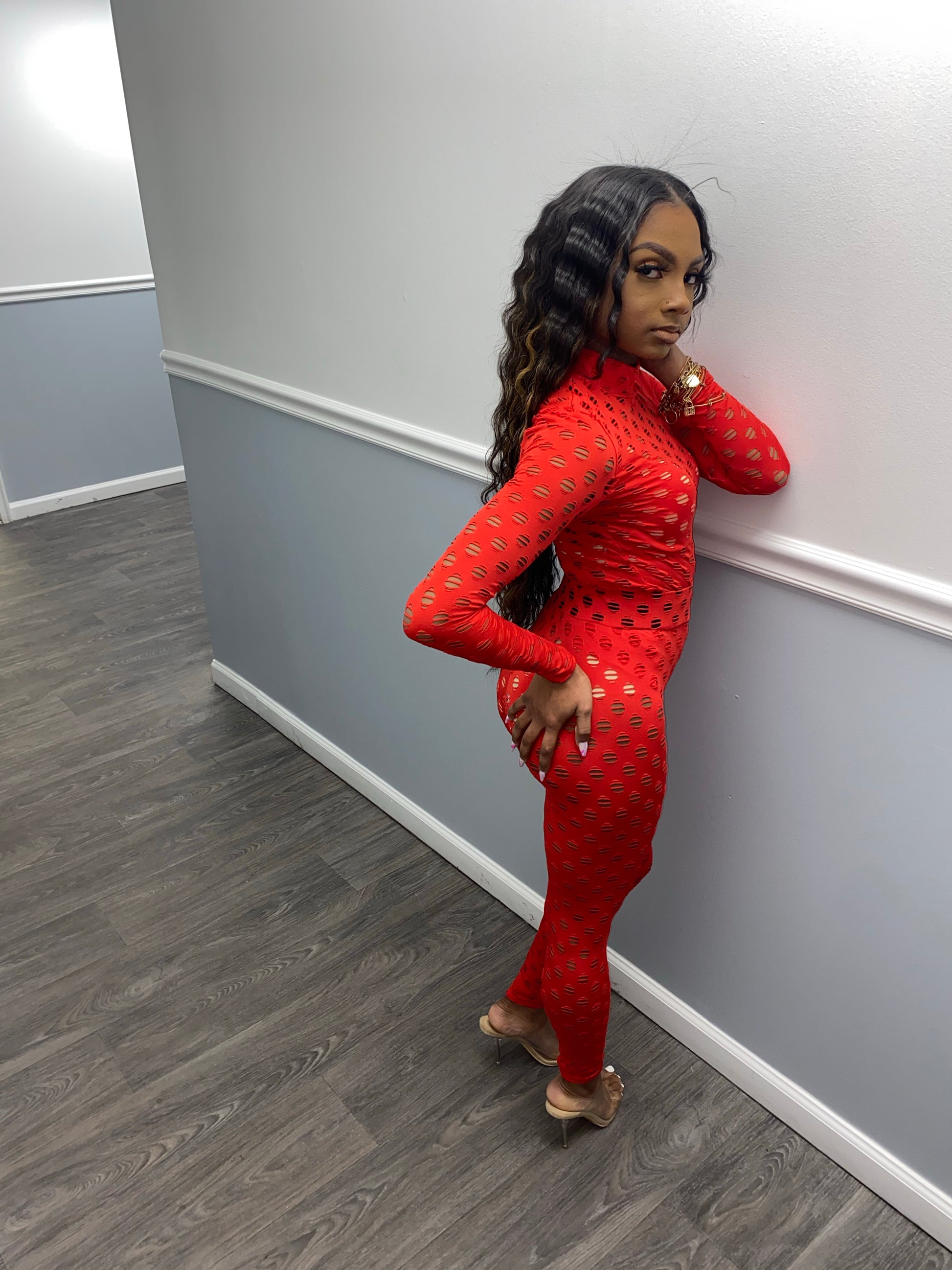Two pc shirt and leggings set , see through holes design w/ stretch